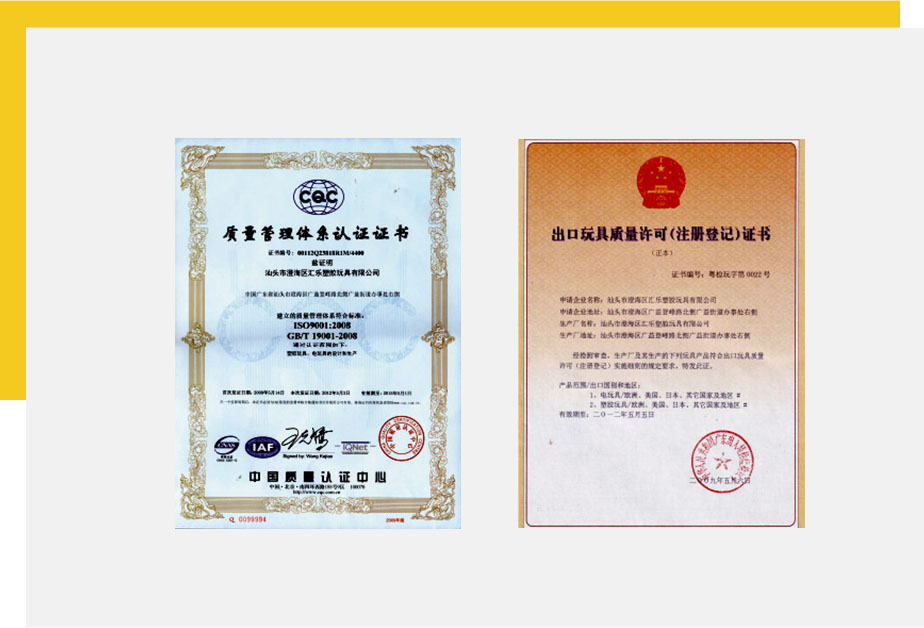 升级实验室,成立自主检测中心;同年通过ISO9001:2008质量体系认证,并获得“出口玩具质量许可证”,产品质量获官方部门“盖章认可”。